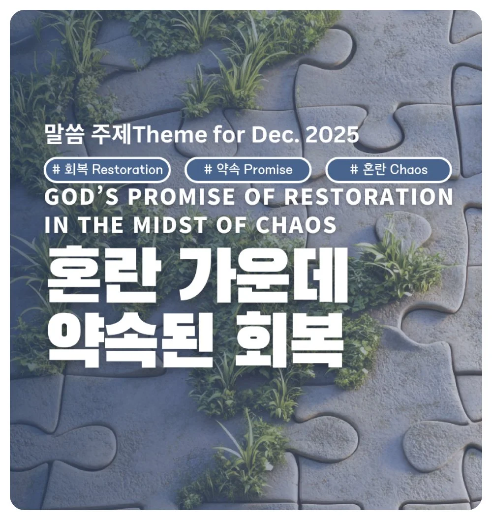 여러분과의 만남은 우연이 아니라 하나님이 맺어주신 것이라 믿습니다. 여러분과 그 아름다운 회복의 자리에 함께 하기를 소망합니다.