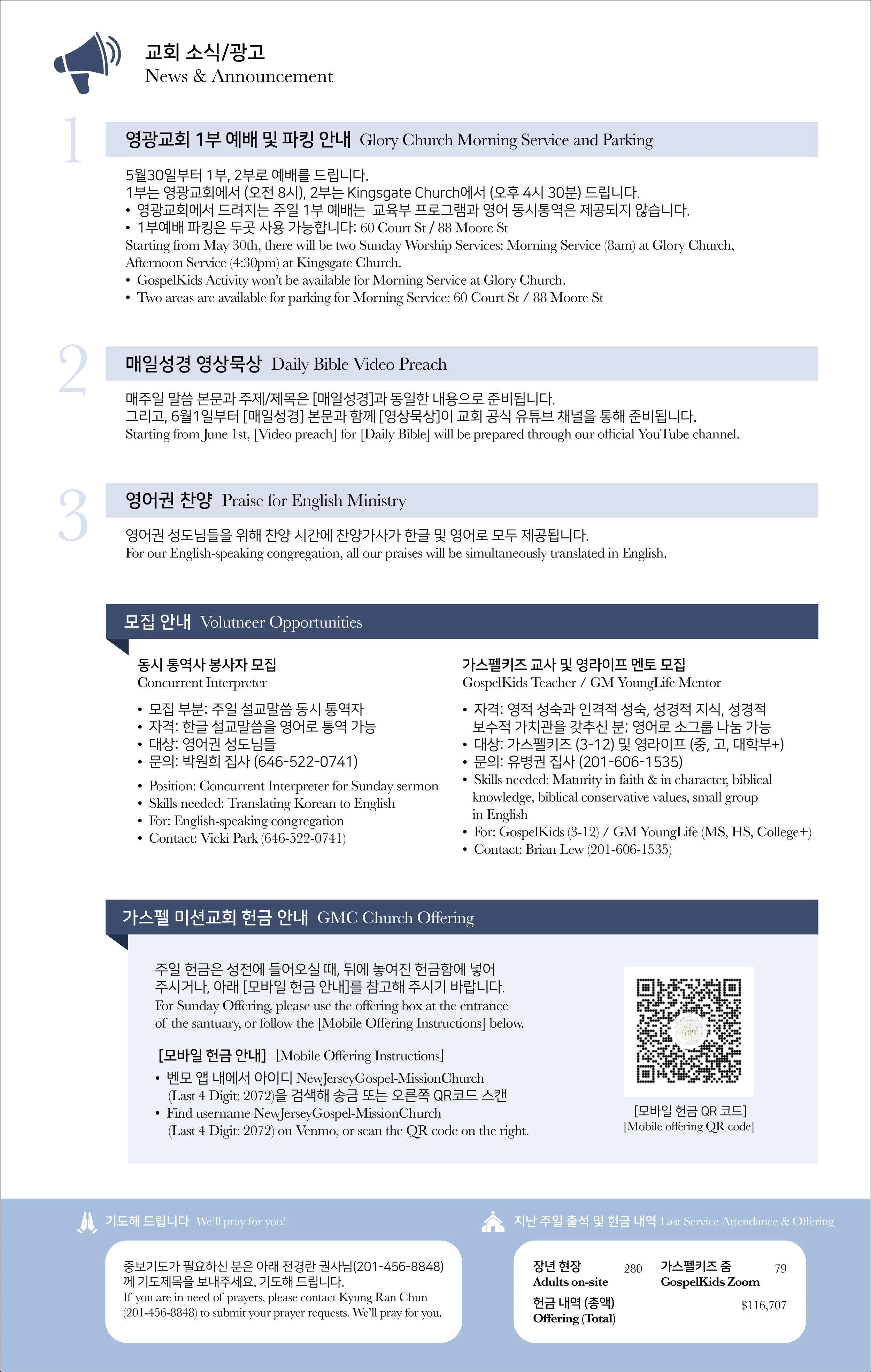 5월 30일자 주보 / Bulletin 5.30.2021 Jun 7 Written By New Jersey Gospel Mission Church New Jersey Gospel Mission Church https://www.njgmchurch.org